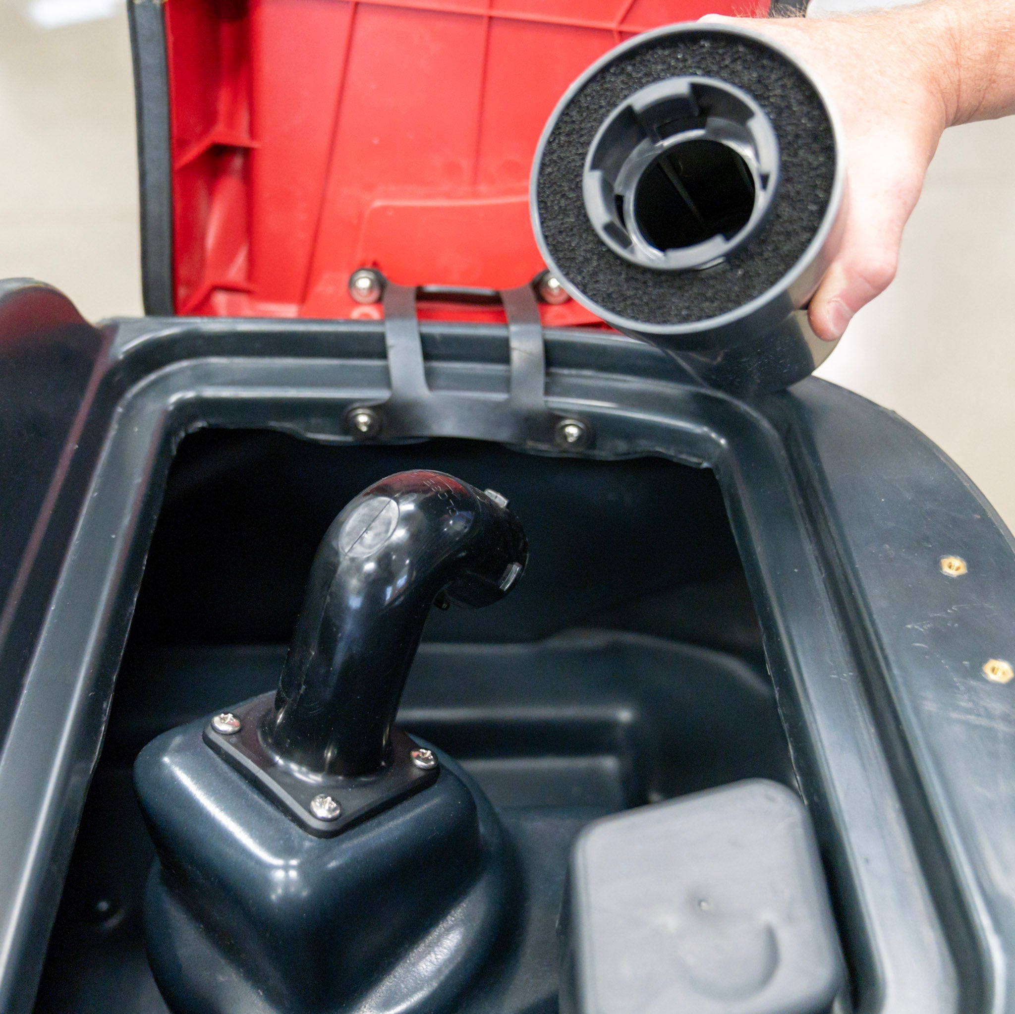 Reliable and safety: Automatic reduce speed control and ergonomic seat with safety switch. Built-in squeegee hanging system on recovery tank for easy machine transfer in narrow areas