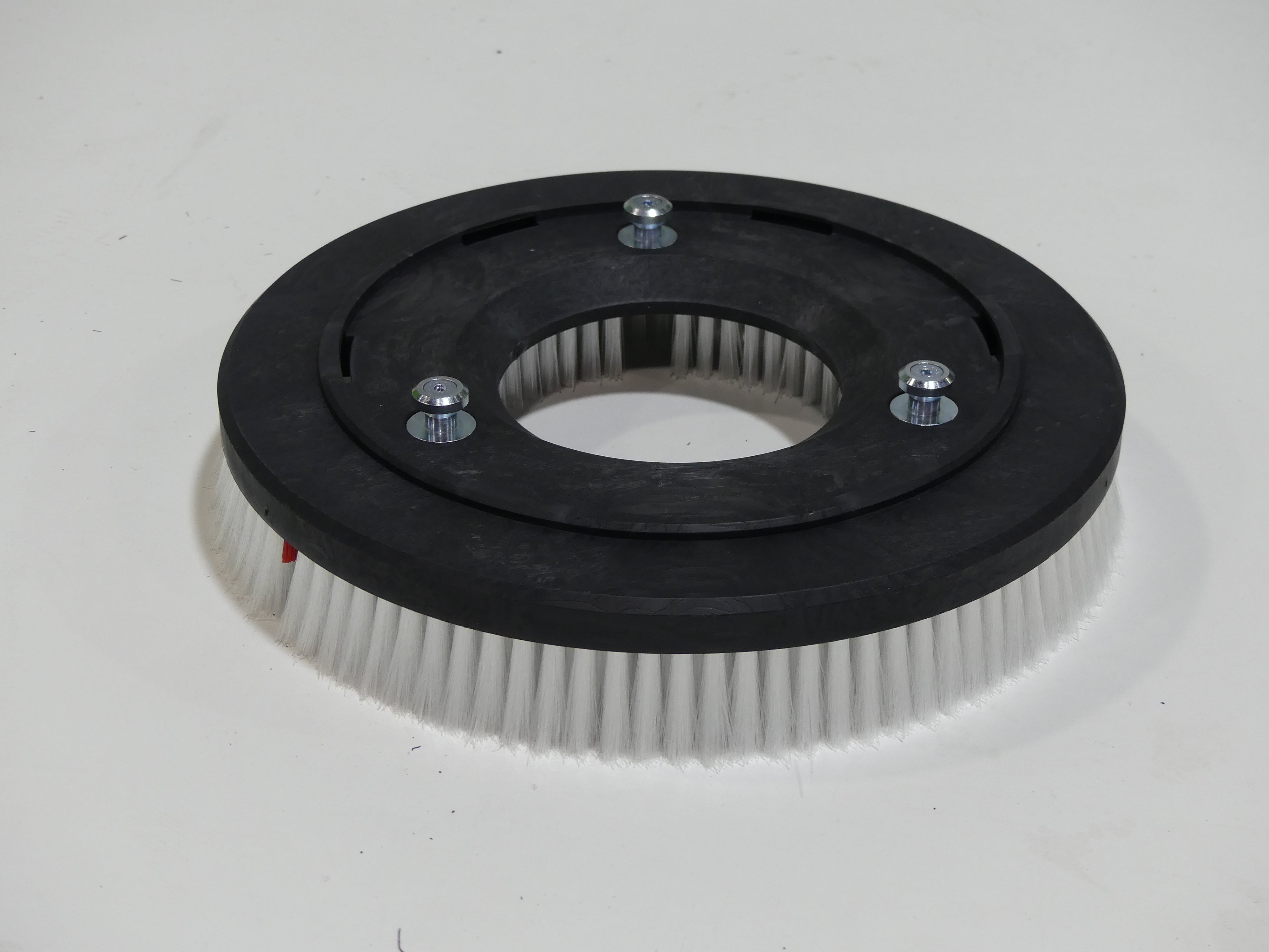 14 Inch disc 3-lug polypropylene scrub brush assembly. Fits Tennant T390
